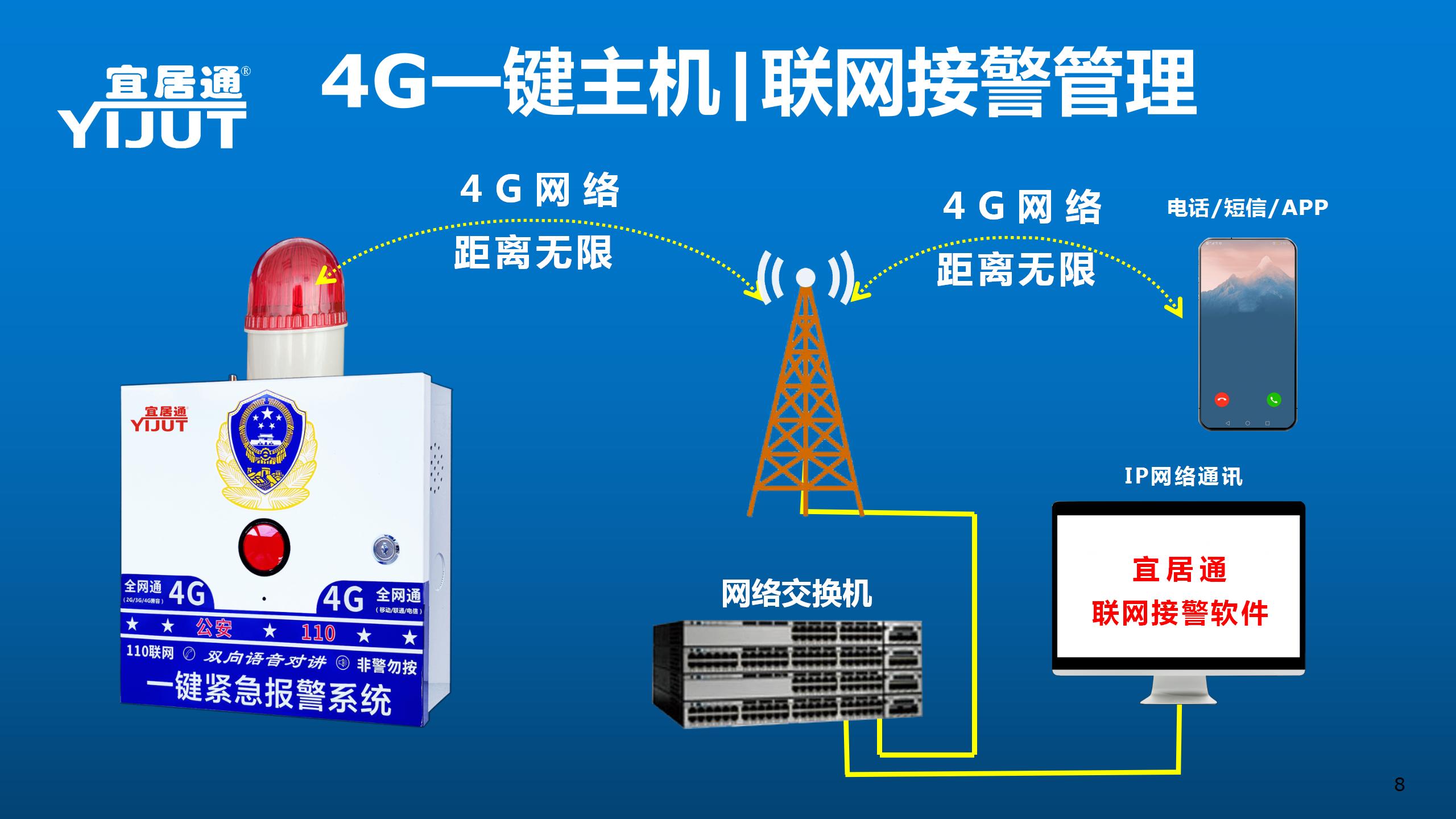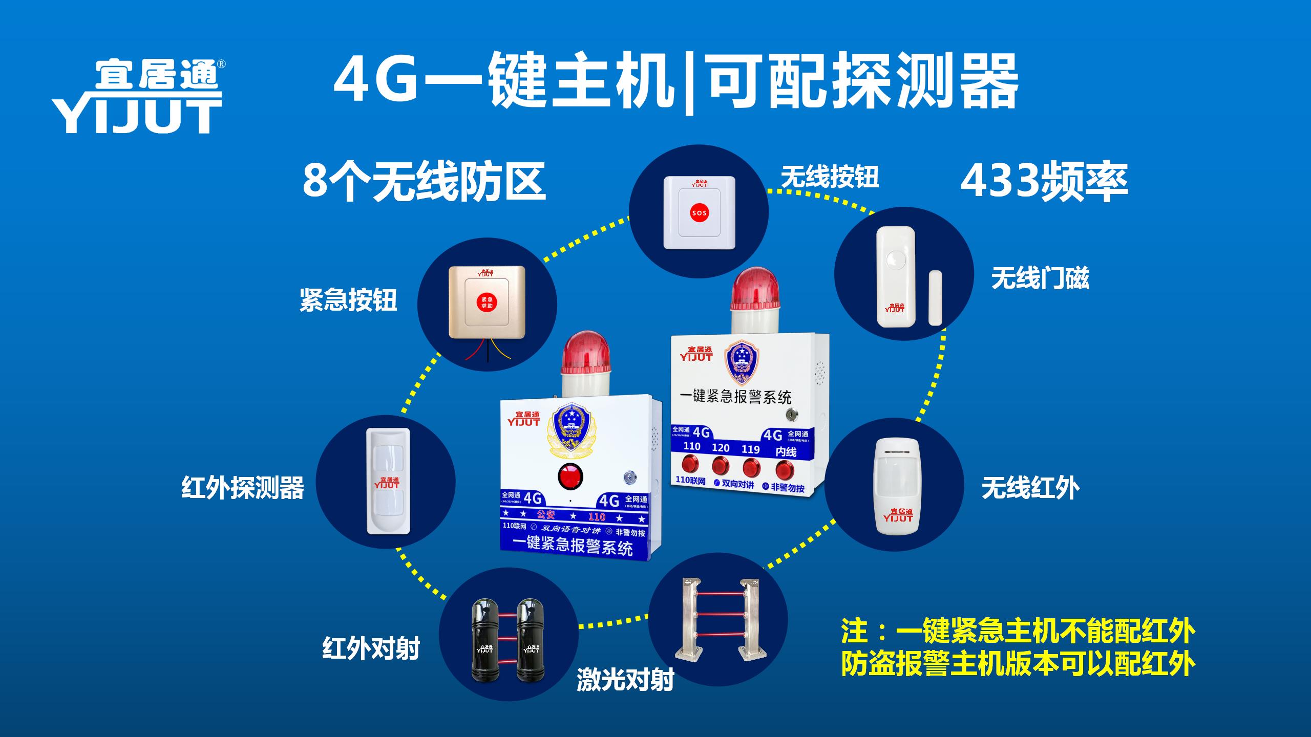宜居通四鍵4G緊急對(duì)講報(bào)警主機(jī)是集多項(xiàng)先進(jìn)技術(shù)、功能于一體的卓越的智能安全技術(shù)防范產(chǎn)品。緊急報(bào)警系統(tǒng)由報(bào)警主機(jī)、遙控器、報(bào)警喇叭、等組成。觸發(fā)相應(yīng)按鈕,即可觸發(fā)報(bào)警喇叭長(zhǎng)鳴,可通過(guò)遙控關(guān)閉喇叭,安裝方便、操作簡(jiǎn)捷廣泛應(yīng)用于各種金融營(yíng)業(yè)場(chǎng)所、各種倉(cāng)庫(kù)、商業(yè)店鋪、寫字樓辦公室、企事業(yè)單位、家庭等安防系統(tǒng)中。可定制多種功能,如GSM功能,無(wú)線聯(lián)網(wǎng)功能等,主機(jī)面板自帶4個(gè)一鍵緊急報(bào)警按鈕,每個(gè)緊急求助報(bào)警按鈕的警情可自定義修改,比如可改成為:暴力,火災(zāi),地震,空襲等功能。