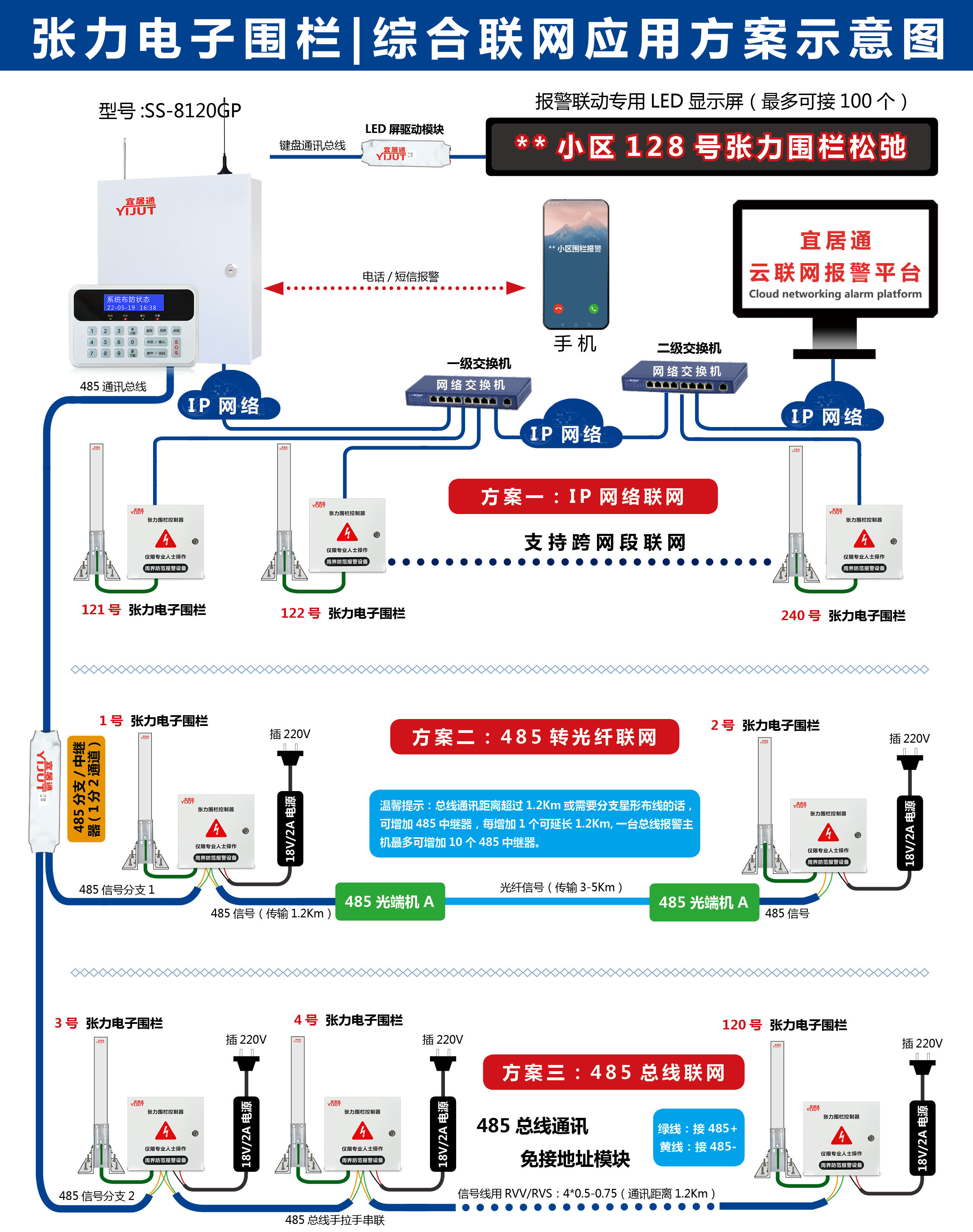線制多樣化:可控制單/雙防區(qū),前端圍欄分別可接4線、6線、8線