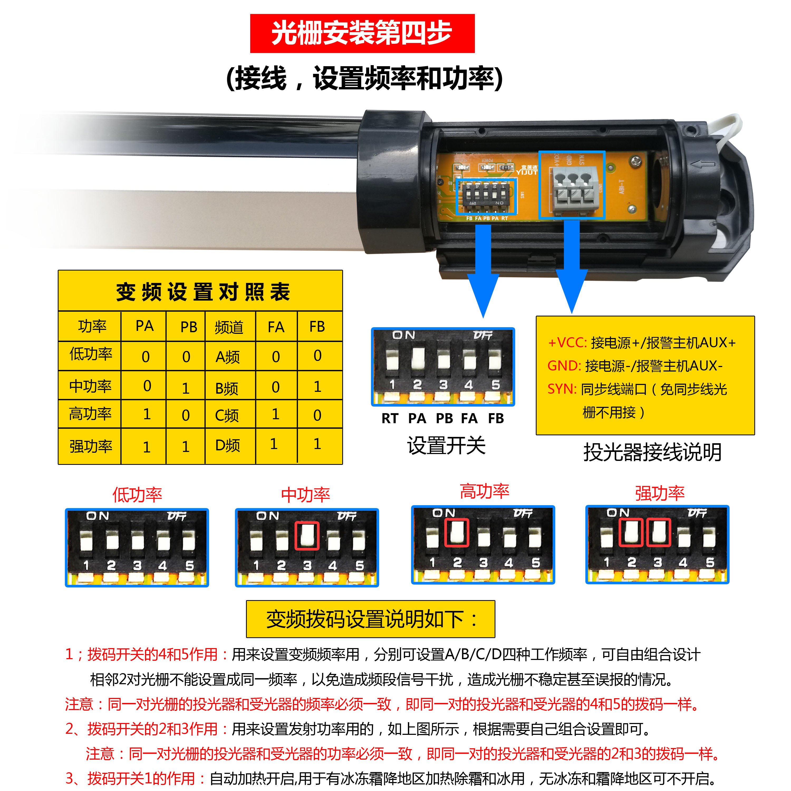SS-GS2宜居通變頻紅外光柵探測(cè)器,該紅外光柵探測(cè)器從有效警戒距離上又分好多個(gè)等級(jí),有效距離從10-100米不等,從接線方式上分為帶同步線型和免同步線型2種,從發(fā)射功率上又分普通型和變頻型2種,具體可根據(jù)需要靈活選配合適的紅外光柵探測(cè)器。