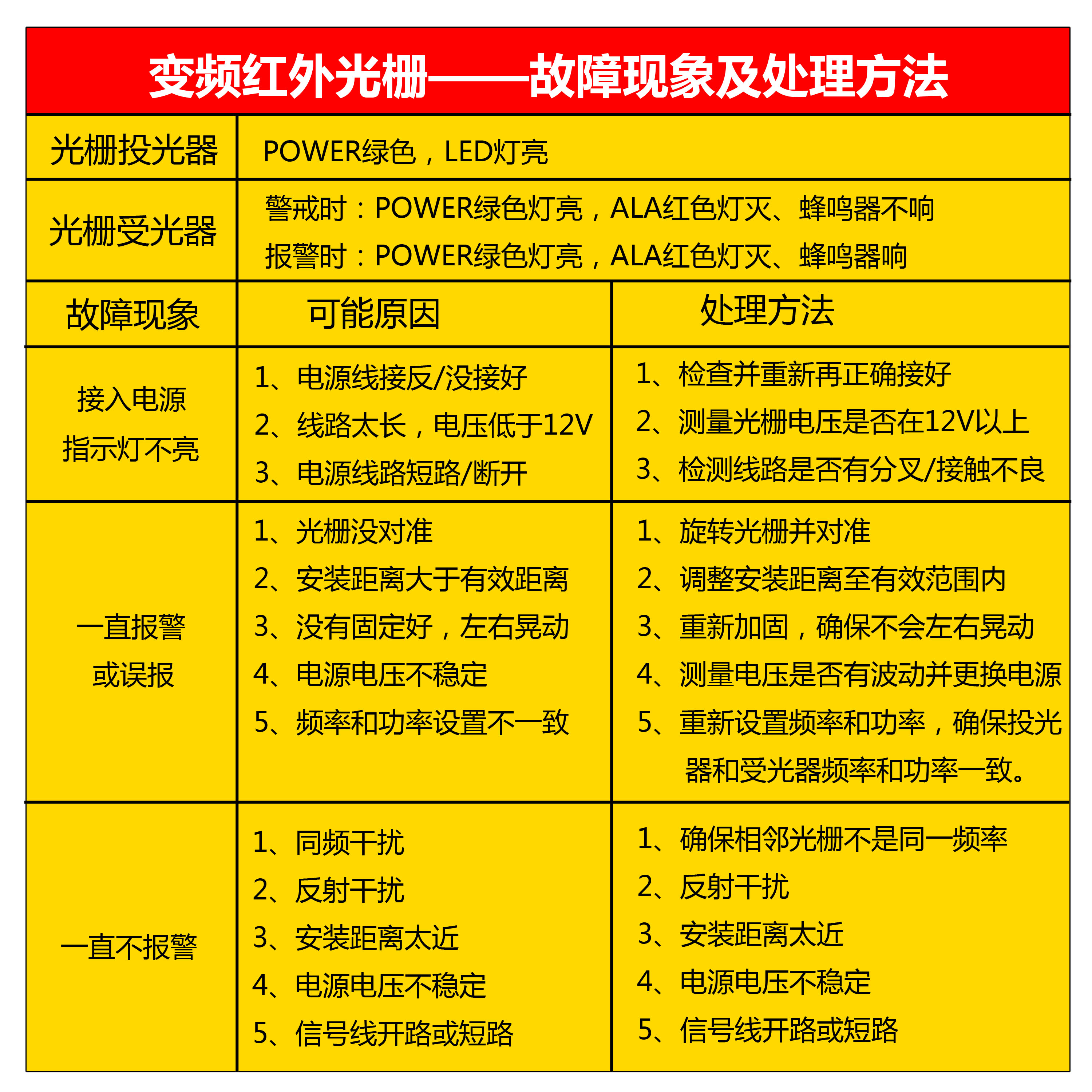 報(bào)警條件 | 相鄰2光束同時(shí)遮斷報(bào)警 |