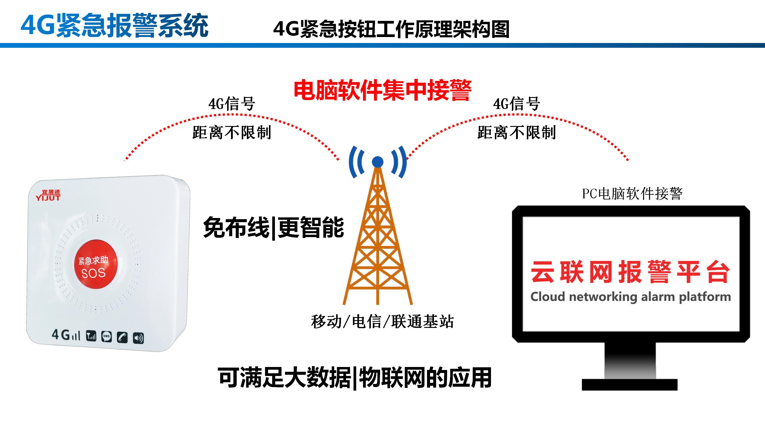 4G無線緊急報(bào)警按鈕聯(lián)網(wǎng)應(yīng)用方案如下: