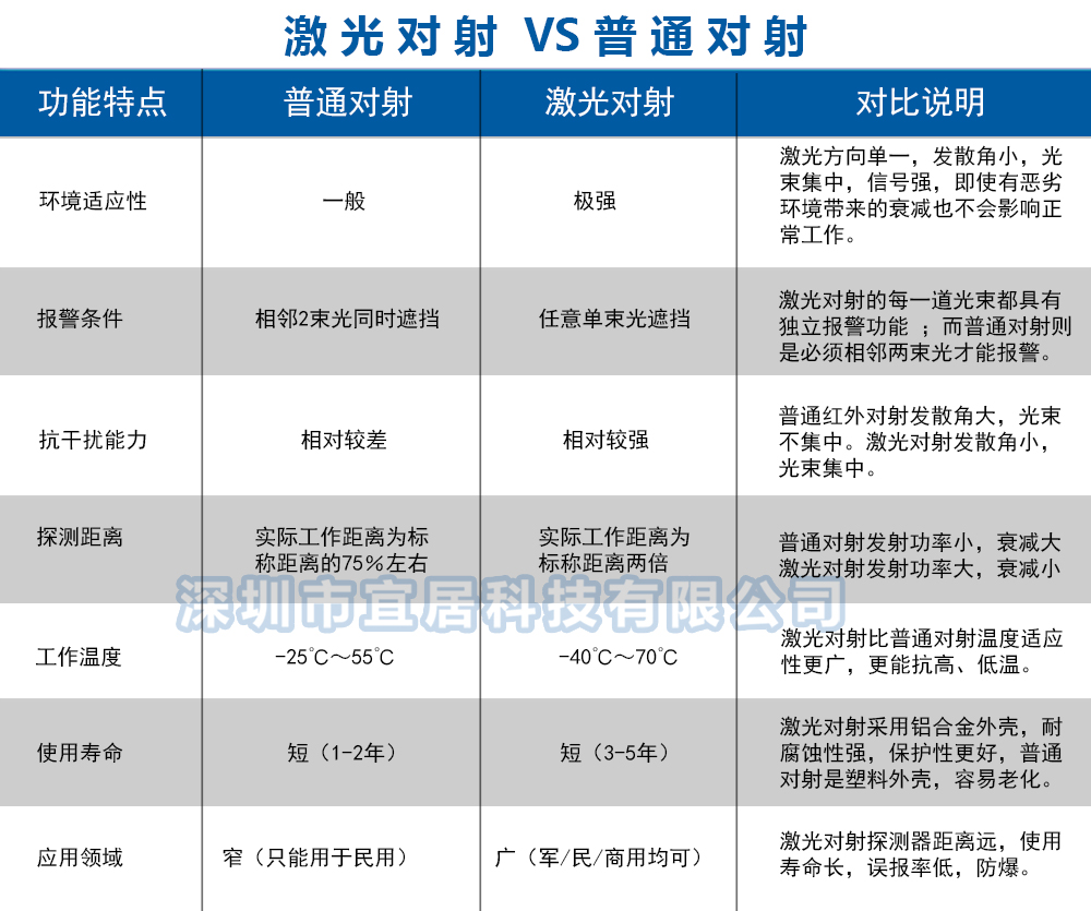 (一)、單光束激光對射特性優(yōu)異,品質(zhì)較高