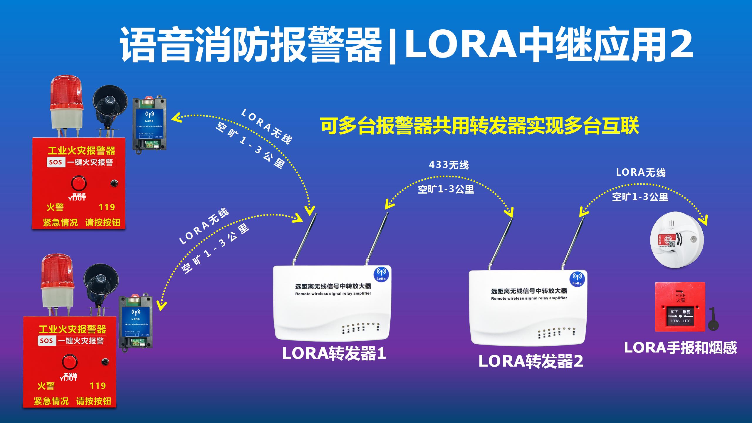 5)★支持增加LORA中繼器,實現(xiàn)無線遠(yuǎn)距離聯(lián)動報警應(yīng)用,輕松實現(xiàn)多臺或者多樓層的LORA聯(lián)動應(yīng)用。