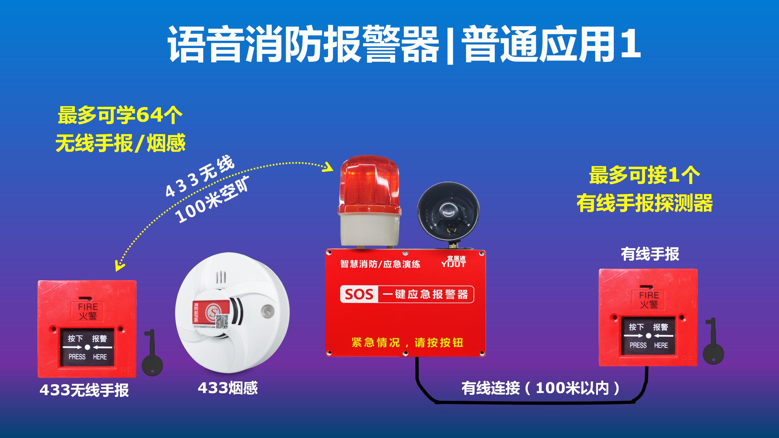 消防語音報警器是一款具有閃燈和語音播報通知2種功能,無線有線兼容,一路有線,64路無線防區(qū),2路警號輸出,采用ABS外殼材質(zhì),具有耐腐蝕,防潮等特點,最大報警聲音可達(dá)130分貝,且支持遙控器無線一鍵調(diào)節(jié),支持6級音量可調(diào),,出廠標(biāo)配含閃燈和語音喇叭在一起,客戶拿起通電,學(xué)習(xí)對碼遙控和按鈕就可以使用,學(xué)習(xí)設(shè)置都是語音播報導(dǎo)航提示,簡單方便,廣泛用于工廠、商業(yè)寫字樓、超市、商鋪、民宿、酒店等公共安全領(lǐng)域。