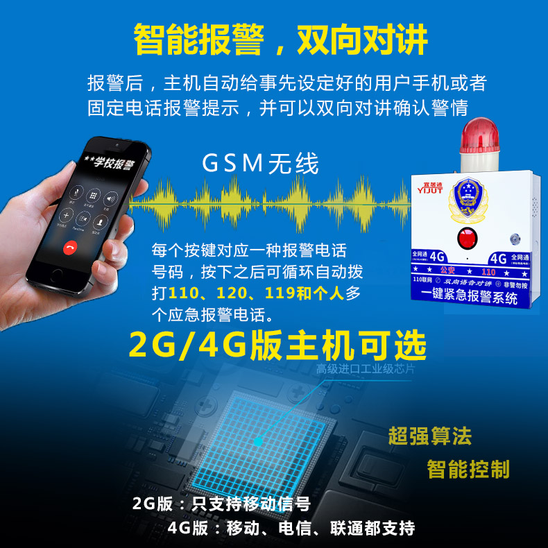 宜居通4G一鍵緊急報(bào)警主機(jī)是集多項(xiàng)先進(jìn)技術(shù)、功能于一體的卓越的智能安全技術(shù)求助報(bào)警產(chǎn)品。4G緊急求助報(bào)警系統(tǒng)由緊急報(bào)警主機(jī)、遙控器、報(bào)警喇叭等組成。主機(jī)面板自帶1個(gè)到4個(gè)一鍵緊急報(bào)警按鈕多種可選,緊急求助報(bào)警警情可自定義修改,比如可改成為:暴力,火災(zāi),地震,空襲等功能。觸發(fā)相應(yīng)按鈕,即可觸發(fā)報(bào)警喇叭長(zhǎng)鳴,可通過(guò)遙控關(guān)閉喇叭,安裝方便、操作簡(jiǎn)捷廣泛應(yīng)用于各種金融營(yíng)業(yè)場(chǎng)所、各種倉(cāng)庫(kù)、商業(yè)店鋪、寫字樓辦公室、企事業(yè)單位、家庭等安防系統(tǒng)中。可定制多種功能,如GSM功能,無(wú)線聯(lián)網(wǎng)功能等。