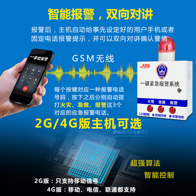 宜居通三鍵4G緊急報(bào)警器是集多項(xiàng)先進(jìn)技術(shù)、功能于一體的卓越的智能安全技術(shù)防范產(chǎn)品。緊急報(bào)警系統(tǒng)由報(bào)警主機(jī)、遙控器、報(bào)警喇叭、等組成。觸發(fā)相應(yīng)按鈕,即可觸發(fā)報(bào)警喇叭長(zhǎng)鳴,可通過(guò)遙控關(guān)閉喇叭,安裝方便、操作簡(jiǎn)捷廣泛應(yīng)用于各種金融營(yíng)業(yè)場(chǎng)所、各種倉(cāng)庫(kù)、商業(yè)店鋪、寫(xiě)字樓辦公室、企事業(yè)單位、家庭等安防系統(tǒng)中。可定制多種功能,如GSM功能,無(wú)線聯(lián)網(wǎng)功能等,主機(jī)面板自帶3個(gè)一鍵緊急報(bào)警按鈕,每個(gè)緊急求助報(bào)警按鈕的警情可自定義修改,比如可改成為:暴力,火災(zāi),地震,空襲等功能。