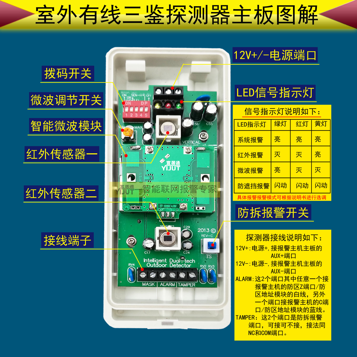 室外三鑒紅外探測(cè)器穩(wěn)定性好,安全性高,微波防遮擋技術(shù),安全等級(jí)更高。