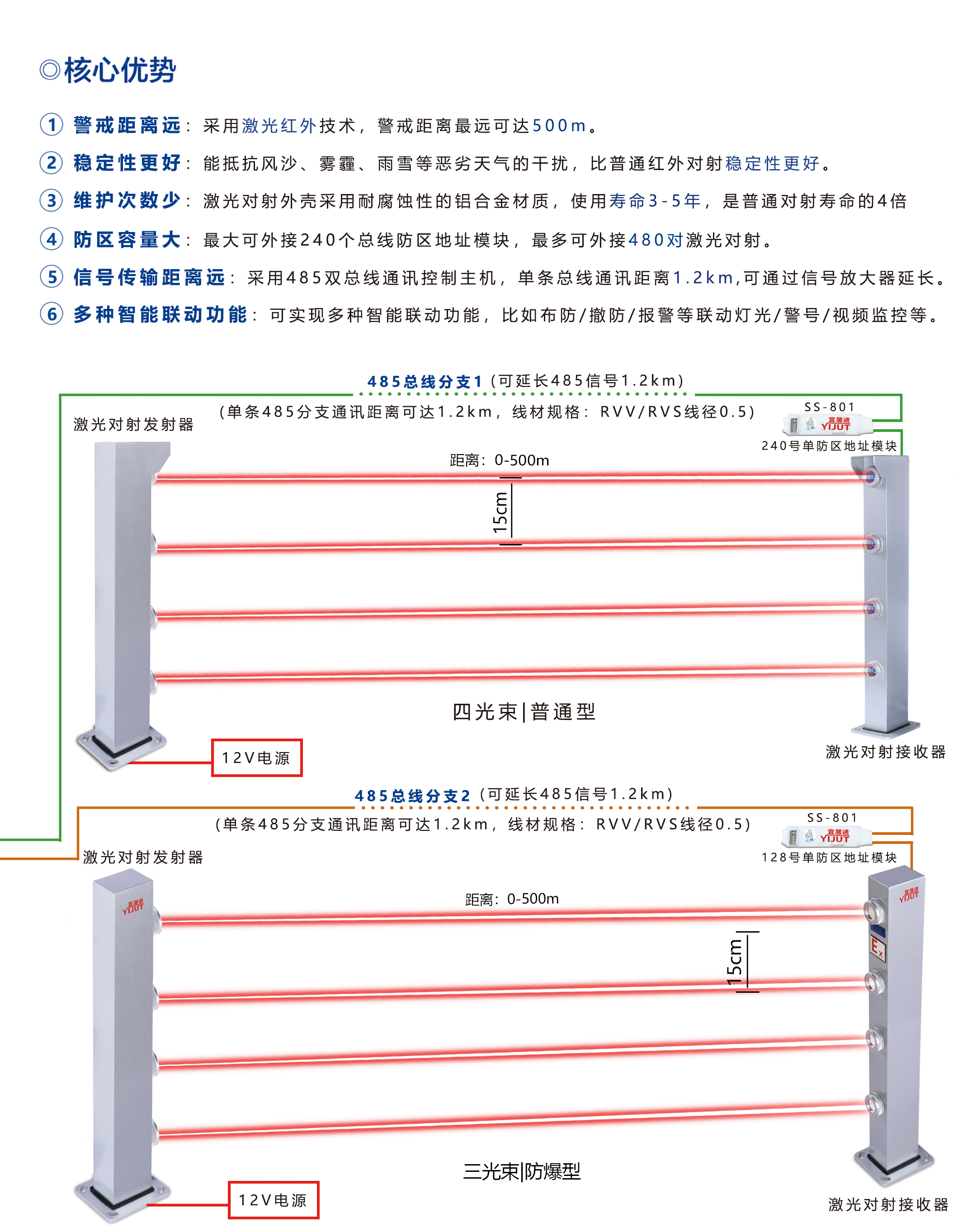 (三)、雙光束激光對射設(shè)防配置靈活,防范精度高