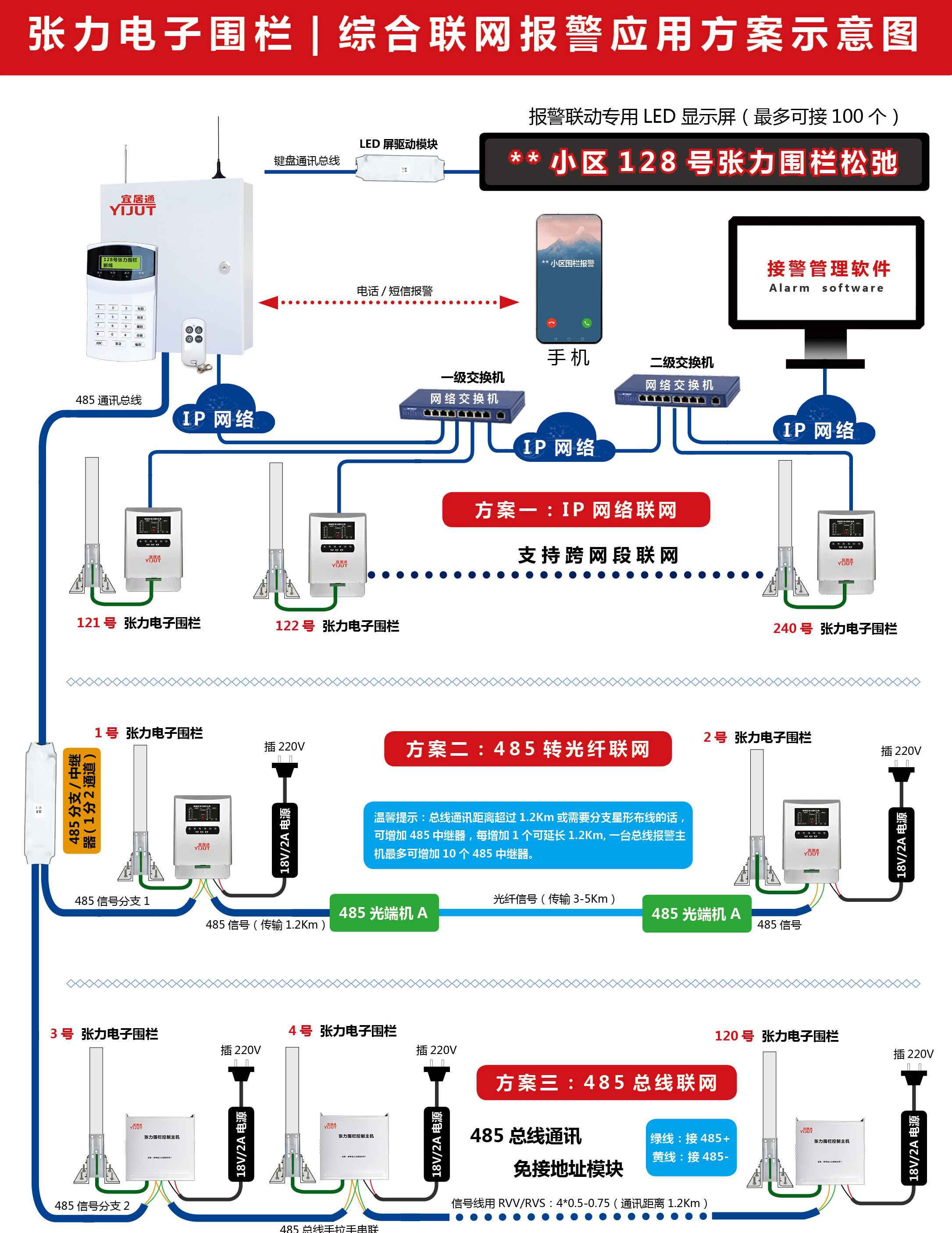展會(huì)上,宜居通不僅展現(xiàn)了全系列的校園一鍵報(bào)警主機(jī)和解決方案,也展示了傳統(tǒng)的110聯(lián)網(wǎng)報(bào)警主機(jī)系統(tǒng),涵蓋總線制報(bào)警主機(jī)和分線制報(bào)警主機(jī),所有主機(jī)均可支持IP/2G/4G擴(kuò)展三網(wǎng)組網(wǎng)聯(lián)網(wǎng),還可以支持LORA組網(wǎng)無線局域網(wǎng)聯(lián)網(wǎng)使用,強(qiáng)電的擴(kuò)展能力和靈活的架構(gòu)設(shè)計(jì),最重要的是超高性價(jià)比,你只需要花費(fèi)海康、博世、霍尼韋爾近一半的價(jià)格就可以享受同樣功能的產(chǎn)品,而且可隨時(shí)免費(fèi)二次開發(fā)對(duì)接,具有全系列的產(chǎn)品方案圖和產(chǎn)品接線圖,售后無憂,質(zhì)量有保障!